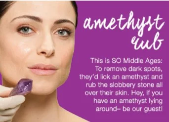 And a geological approach was taken in the Middle Ages when women would lick an amethyst and rub it on their faces to try to achieve a youthful look.